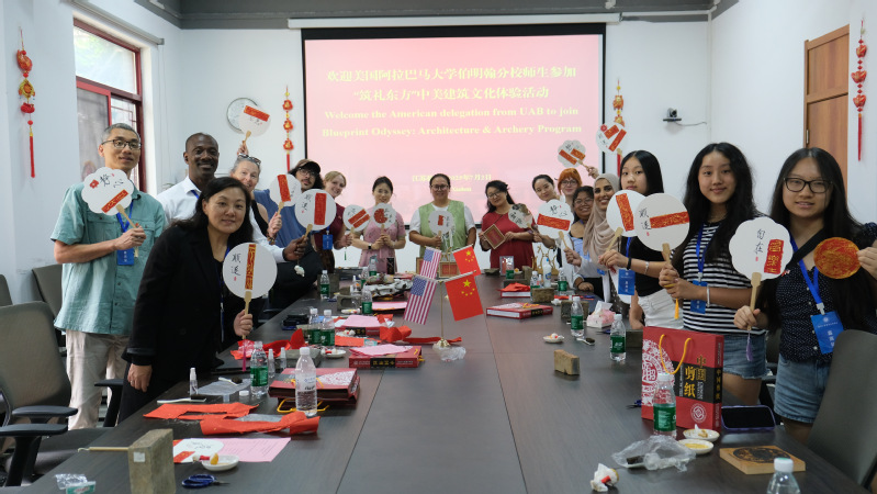据悉,此次活动是落实习近平总书记“中方未来5年愿邀请5万名美国青少年来华交流学习”倡议的重要实践。紧扣“筑礼东方”这一中美建筑文化体验主题,美国阿拉巴马大学伯明翰分校师生参观了我校建筑技术馆和礼射展览馆,并拓展体验了非遗拓印等活动,全方位感悟中国建筑与礼仪文化魅力。未来,学校将持续深化与美国、德国、俄罗斯等国家高校的务实合作,积极拓展国际交流渠道,推进国际化办学。