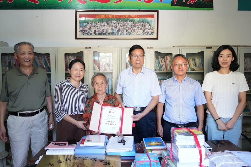 会前,任留钦一行参观了邳州市陈楼镇陈玉文读书点,听取创始人陈玉文对该点的详细介绍,并举行聘书颁发及图书捐赠仪式。随后,双方围绕关工委工作特点,就校地合作开展思路及内容进行深入研讨,并达成共识。会上还举行了大学生社会实践基地授牌仪式。