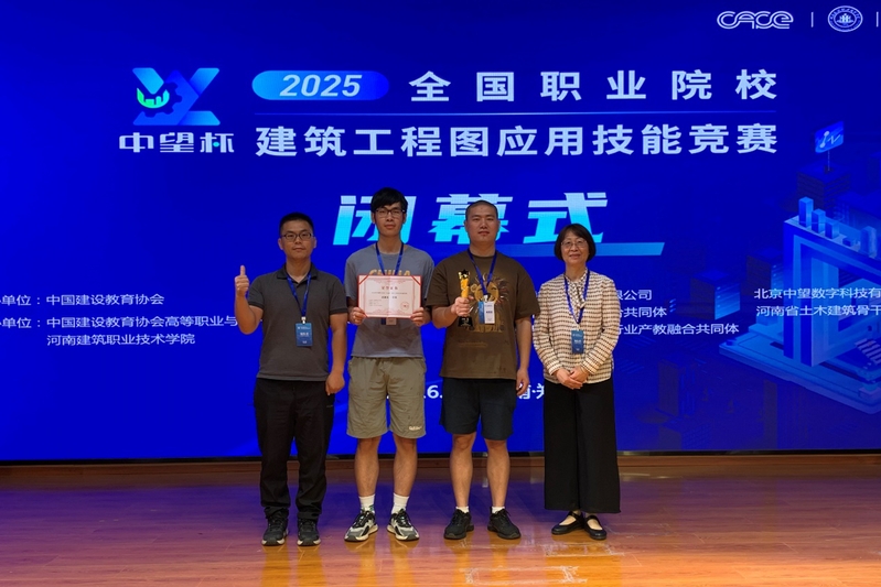 6月19日至22日,由中国建设教育协会主办的2025年全国职业院校“中望杯”建筑工程图应用技能竞赛在河南建筑职业技术学院举行,由我校建筑建造学院学生李齐、庞春组成的参赛队伍(指导教师:喻圣洁、王玮)以总成绩第二名的成绩获一等奖。