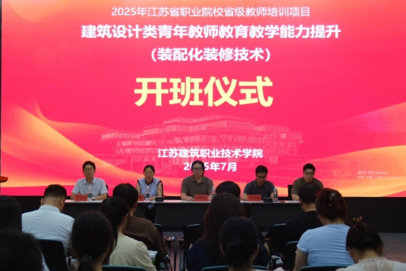7月14日,2025年江苏省职业院校教师培训项目“建筑设计类青年教师教育教学能力提升(装配化装修技术)”在我校开班。党委委员、副校长刘海波出席开班仪式并致辞,建筑装饰学院领导班子成员以及全体参培教师参加开班仪式。