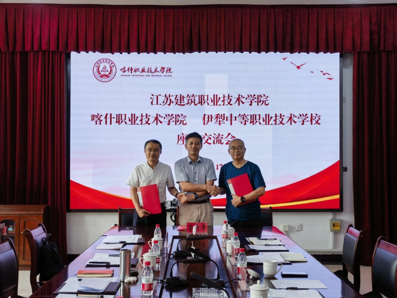 7月17日,朱东风一行与伊犁中等职业技术学校领导共同前往喀什职业技术学院调研,受到了该校党委书记李怀仁,党委委员、副院长李文科热情接待。座谈会上,李文科详细介绍了喀什职业技术学院办学特色、援建合作及服务“一带一路”等方面的情况。他希望三校能够凭借各自的区位优势,在对口援建、专业共建、师资培养、人才共育、遗产保护等领域加强合作,探索东西部校际协作新路径。朱东风介绍了我校历史与办学概况,提出“江苏建院-喀什职院-伊犁中专”东西部、南北疆职教协作联盟的战略构想,建议三校通过党建引领,推动组织共建、专业协同、文化共融,建立“专业建设+遗产保护+民族团结”三位一体协作机制,打造横跨东西部、纵贯南北疆的职业教育协作网络。座谈后,我校与喀什职业技术学院、伊犁中等职业技术学校共同签署了《东西部校际合作框架协议》,并就后续合作事宜进行了深入交流。