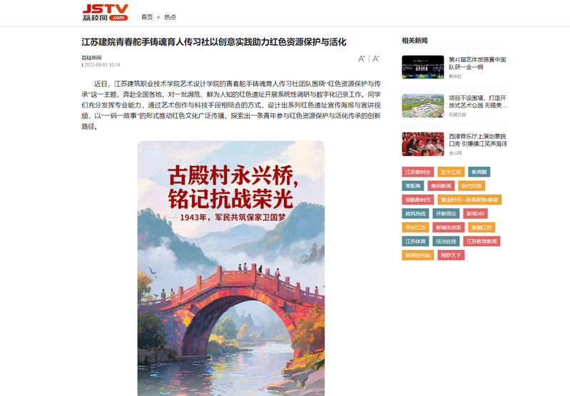 此次社会实践,实践团队不仅走访了多处散落于乡村山野、街巷深处的革命旧址、抗战后方设施等历史遗存,还通过档案梳理、地方史考证与口述史采集等方式,深度挖掘遗址背后的动人史实。依托视觉传达、数字媒体等艺术专业背景,完成了多组主题鲜明、设计精良的红色遗址海报和宣讲视频。每张海报不仅再现历史场景,更附有一个链接至线上数字展馆的二维码。公众扫码后可进入由学生自主构建的红色遗址数字档案平台,浏览遗址现状图片、历史沿革、英雄事迹、视频解说等多维度内容,实现了红色文化从线下到线上、从静态到交互的跨越性保护与传播,以专业技能助力这些“沉默的红色印记”焕发生机,有效提升了公众对红色遗址的关注度和保护意识。