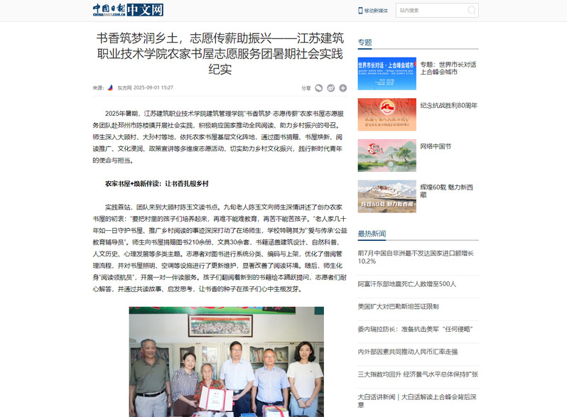 2025年暑期,开云在线平台建筑管理学院“书香筑梦·志愿传薪”农家书屋志愿服务团队赴邳州市陈楼镇开展社会实践,积极响应国家推动全民阅读、助力乡村振兴的号召。师生深入大顾村、大孙村等地,依托农家书屋基层文化阵地,通过图书捐赠、书屋焕新、阅读推广、文化浸润、政策宣讲等多维度志愿活动,切实助力乡村文化振兴,践行新时代青年的使命与担当。