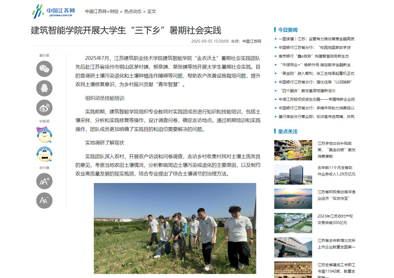 【中国江苏网】建筑智能学院开展大学生“三下乡”暑期社会实践