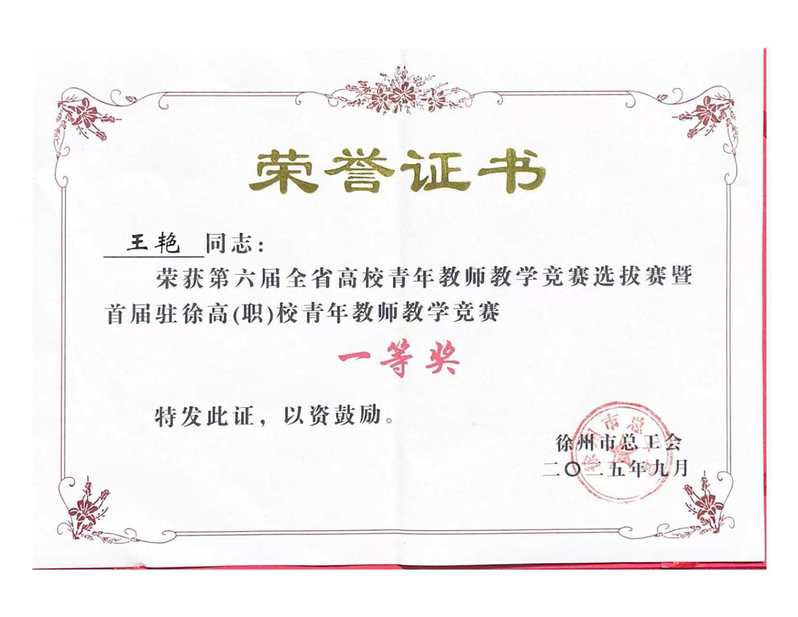 9月19日至21日,第六届全省高校青年教师教学竞赛选拔赛暨首届驻徐高(职)校青年教师教学大赛决赛在江苏师范大学举办,我校三名参赛教师获一等奖1项、二等奖2项,其中建筑建造学院教师王艳获大赛一等奖,艺术设计学院教师张本俊、马克思主义学院教师张梦慧获二等奖。