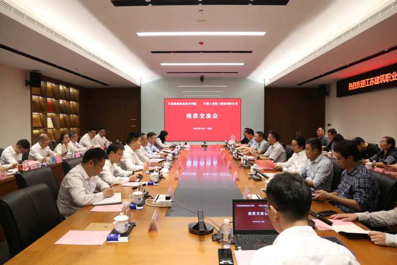 座谈交流中,朱东风首先从学校的历史沿革、专业布局、人才培养、校企合作、国际化办学等方面,简要介绍了我校办学的基本情况,并围绕“一提升三转向五重构”转型改革思路、做法和成效作了重点阐释。他表示,学校与中建八局第三建设有限公司同根同源,具有相同的红色基因和发展使命,校企双方拥有深厚的合作基础,学校专业设置与企业业务板块高度匹配,在当前建筑产业转型期,学校将积极对接行业需求,持续深化转型改革发展,不断优化人才培养体系,继续提升技术服务能力,不断助力产业转型发展。他希望,校企双方能够以此次调研为契机,在转型人才培养、应用技术开发以及新的创新领域开展更深层次的合作,共同谋划好“十五五”事业发展。
