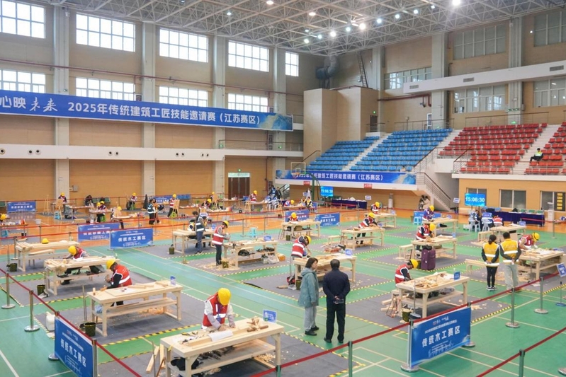 10月25-26日,由住房和城乡建设部人力资源开发中心主办、我校承办、中国建筑业协会古建园林与环境工程分会协办的住房和城乡建设部2025年传统建筑工匠技能邀请赛(江苏赛区)在我校举行。住房和城乡建设部村镇建设司传统村落保护利用处处长孙晓春、住房和城乡建设部人力资源开发中心副主任杨飞、中国建筑业协会古建园林与环境工程分会会长石萌、江苏省住房和城乡建设厅村镇建设处处长崔曙平,我校党委副书记、校长沈士德及党委委员、副校长刘海波出席开幕式。开幕式由刘海波主持。