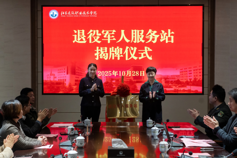 仪式前,与会人员参观了位于“一站式”学生社区的退役军人服务站。站内设有梦军旅体检站、老兵谈心谈话室、军校文化墙等功能区域,通过墙上的老照片,生动再现了学校前身“中国人民解放军基建工程兵第三技术学校”的历史。退役军人荣誉墙集中展示“徐州好人”李兆清、参与九三阅兵的任子博等学子事迹,立体呈现了学校深厚的“军校基因”。