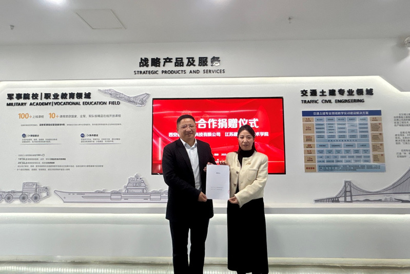 仪式上,蒋兆峰介绍了学校专业转型发展、校企产教融合方面的情况,并感谢企业在优质教学资源和虚拟仿真方面给予学校的支持。他表示,此次捐赠标志着双方合作进入资源共建与专业转型的新阶段,学校师生将充分运用此次企业捐赠的技术平台与教学资源,进一步加强协同育人,深化校企在人才培养、科研攻关等领域的合作。