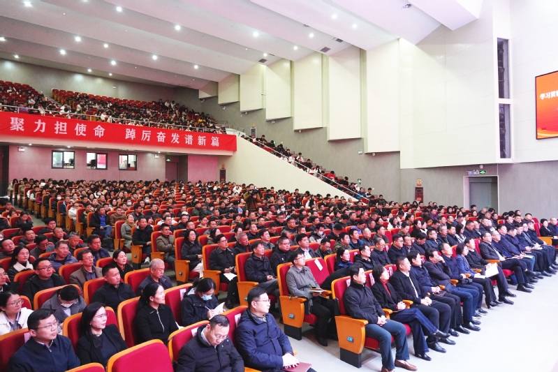 11月25日下午,我校在会堂举行学习贯彻党的二十届四中全会精神宣讲报告会。市委宣讲团团长、市委常委、市委宣传部部长刘伟来校作专题报告。市委宣传部、市委网信办正科级以上干部,市直宣传文化系统各单位班子成员,学校党委领导班子成员、中层以上干部、全体教职工党员及学生代表参加此次报告会。报告会由党委书记朱东风主持。