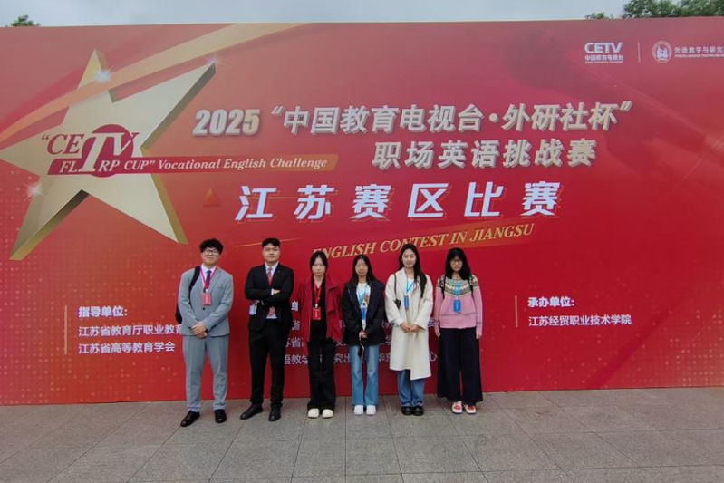 11月9日,2025“中国教育电视台・外研社杯”职场英语挑战赛(江苏赛区)在江苏经贸职业技术学院举办。在教师张永文、章妍、史胜翠、白杨的指导下,我校学生郭笑朵、臧文清、陈怡萱在写作比赛中分别获省赛特等奖、二等奖和三等奖;孙顾涵在演讲比赛中获省赛一等奖,岳星彤、汤司晨获省赛三等奖。其中,郭笑朵于12月6日代表江苏省出征全国总决赛,夺得全国特等奖,创下我校在此项赛事中的历史最佳战绩,取得重要突破。