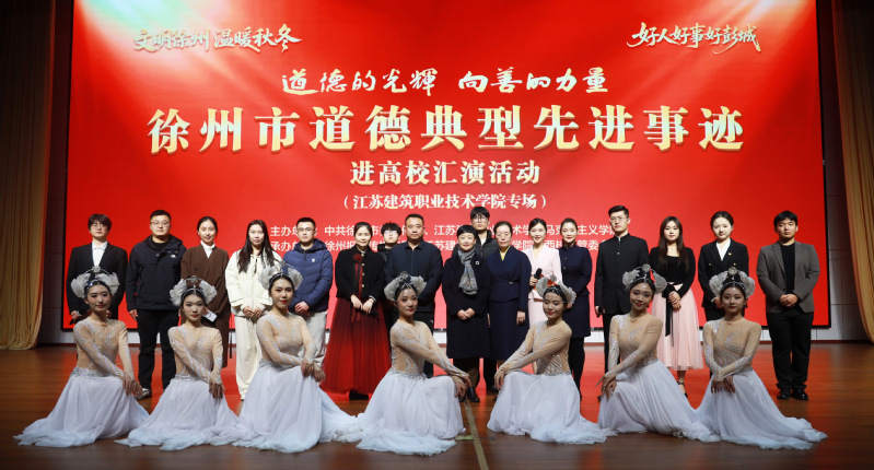 巡演活动采用“身边人讲身边事、身边事教身边人”的形式,通过歌舞、戏曲、情景讲述等艺术表现方式,生动呈现了徐州道德模范的感人事迹,充分展现了孝老爱亲模范张公兰、护林人周云鹏等道德典型的先进事迹。我校学子表演的《特别的人》《与凤行》等节目,生动呼应主题,表达了青年学生对美德与奋斗的礼赞。