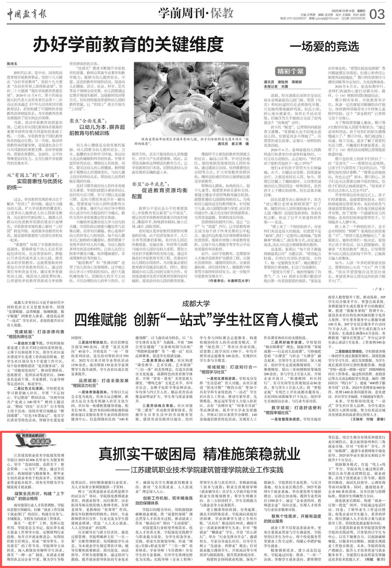 面对建筑行业人才需求调整,学院从思想引领破局,打破“就业工作仅属于就业部门”的误区,构建全员参与、全域覆盖、全程发力的就业工作体系。