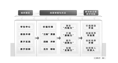 江苏建院智能制造学院构建“塑价值、厚基础、重技能、强创新”四维育人体系,实现沉浸式培养全覆盖。柔性引入大国工匠、技能大师、优秀企业家参与教学,借助技能人才的言传身教坚定学生的创新意志;强化基础课程的项目化教学,筑牢理论基础,借助启发式项目案例培养学生的创新意识;深化产教融合,强化技术技能培养,借助技能大赛等途径锤炼学生的创新本领,同时开设卓越工匠班,全程采用项目化教学模式,针对性提升学生技能动手能力与实践素养;开设创新实践课程,组建创新型学生社团,借助创新创业竞赛、科技研发等途径激发学生创新思维。